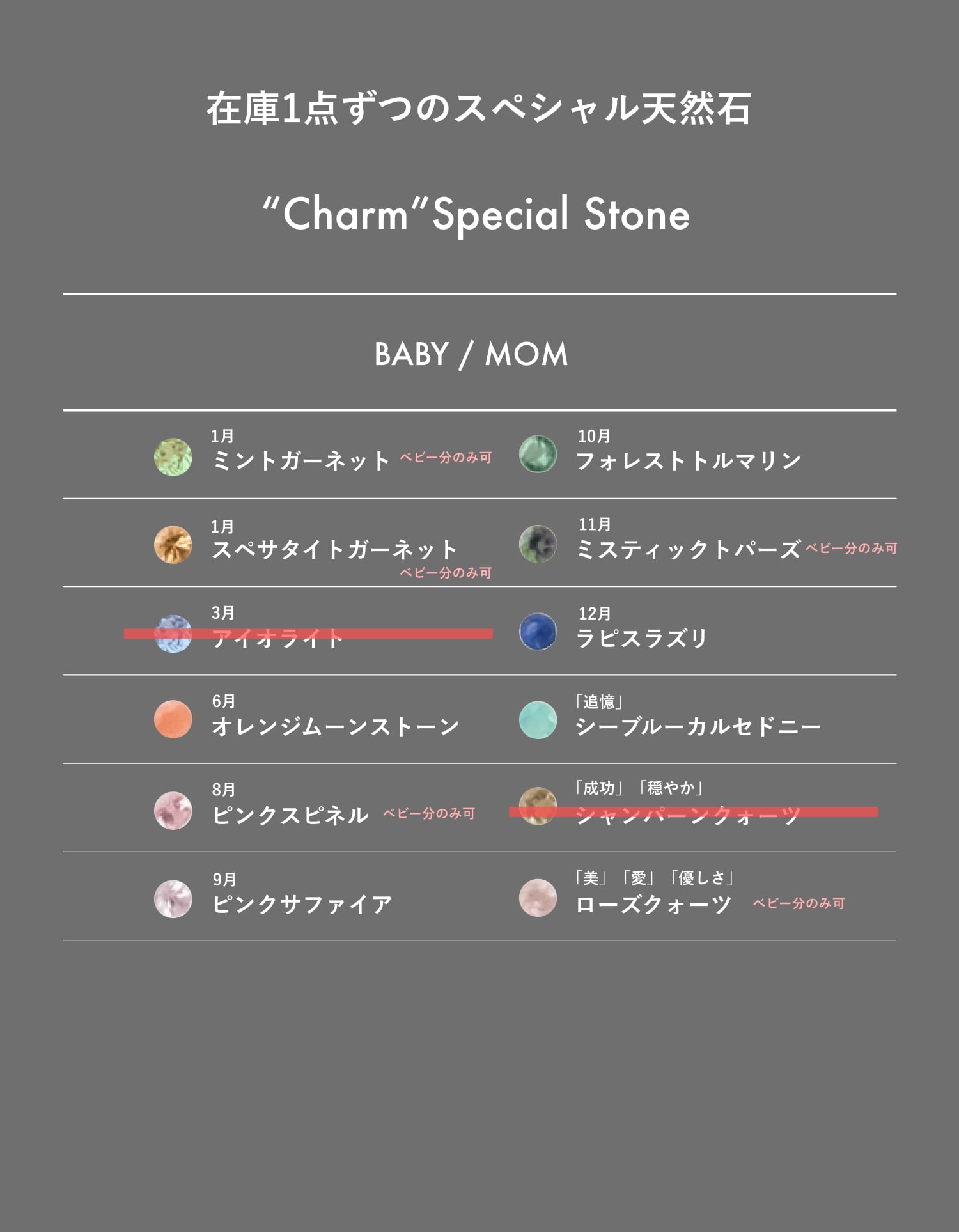 ※在庫表に残っている場合、下の定番石+最後の画像にあるスペシャル石からお選びいただけます!